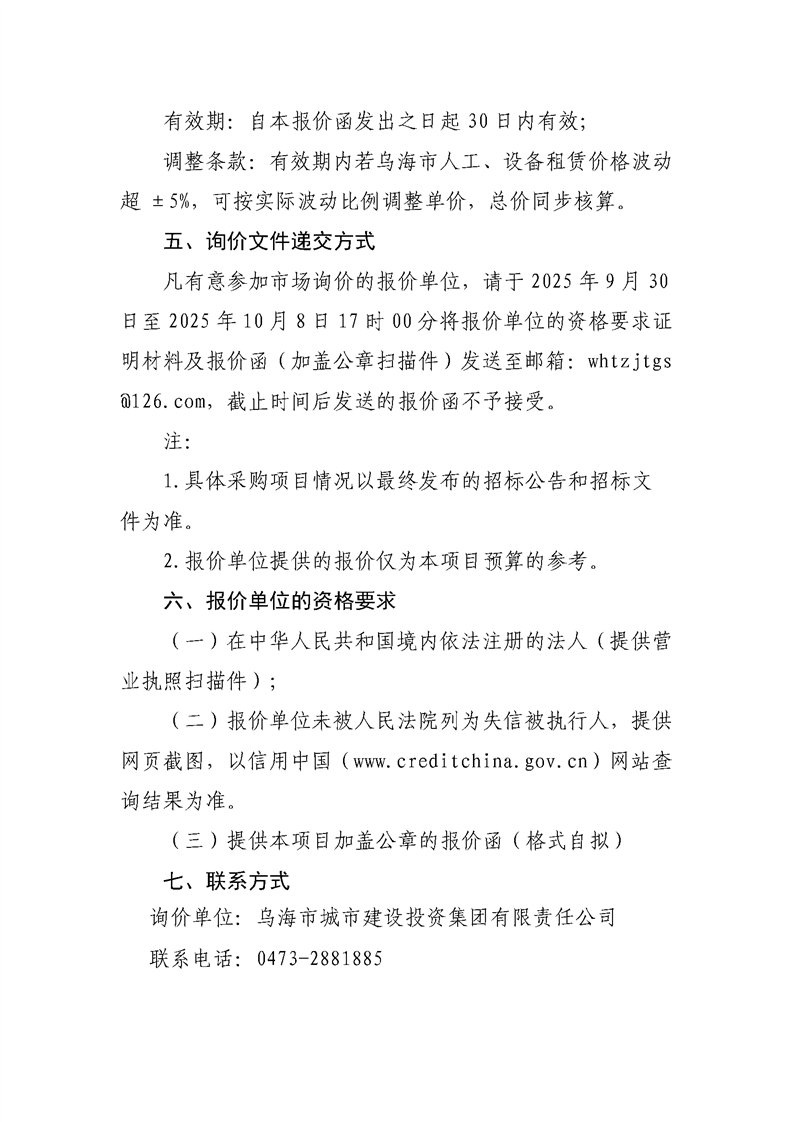 - 2025-07-17烏海市濱河城市運營服務有限責任公司電梯維保服務商采購詢價文件