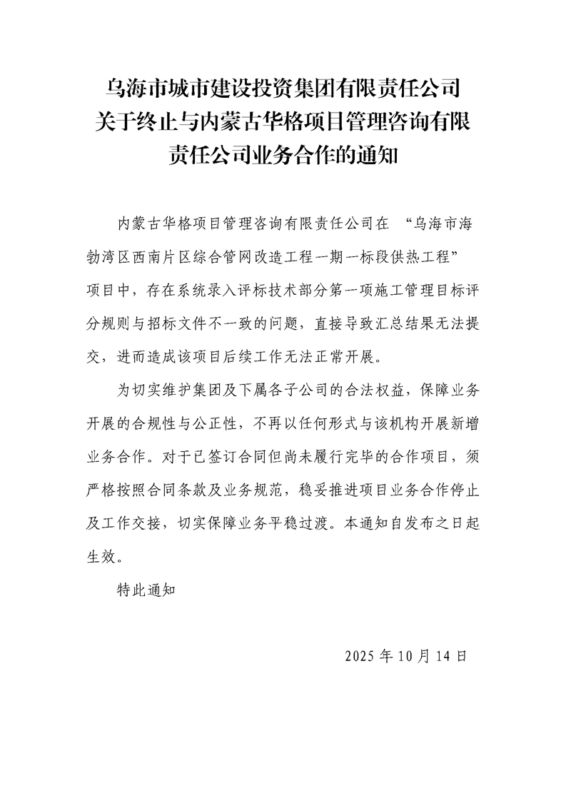 - 2025-07-21烏海市城市建設投資集團有限責任公司五虎山井田南部采空區(qū)災害綜合治理項目公開招聘項目負責人延長報名時間的通知